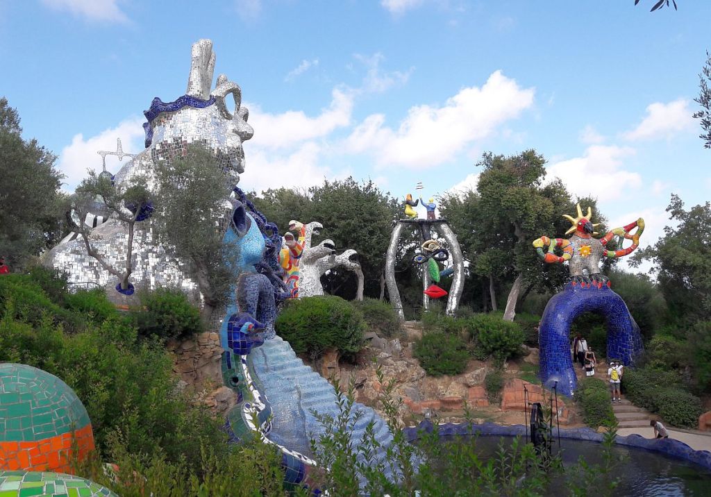 Die Künstlerin Niki de Saint Phalle hatte eine schwere Kindheit. Wie schwer, kann man erahnen, wenn man ihre Skulpturen im Tarotgarten sieht. Eine absolut sehenswerte Sammlung von Exzessen der menschlichen Fantasie. Ich muss gestehen, dass ich mal wieder den Reiseführer nicht gelesen habe und daher nur spekulieren kann, was die Künstlerin mit ihren Werken aussagen wollte.