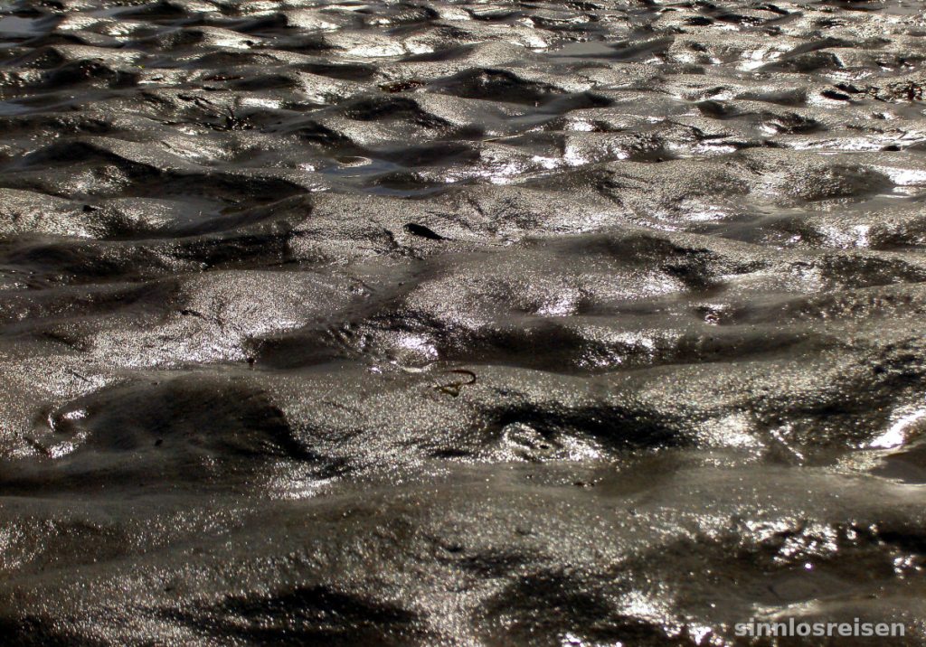 In Knysna haben die Gezeiten eine große Bucht ins Land gegraben. Bei Flut steht hier alles unter Wasser, aber bei Ebbe entsteht ein begehbarer Matschteppich, aus dem die Einheimischen riesige Würmer als Köder zum Angeln ziehen. Man sollte allerdings rechtzeitig wieder auf sicheres Land klettern, bevor das Wasser zurück kommt.