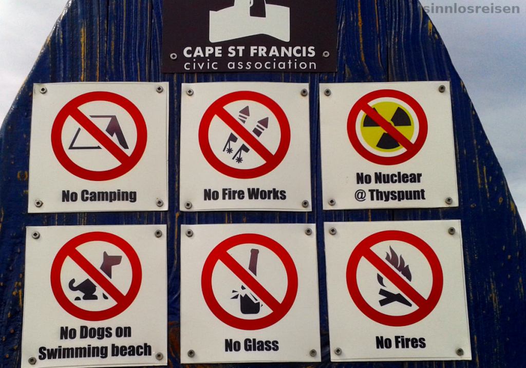 Am Strand von Cape St. Francis legt die örtliche Behörde viel Wert auf Ordnung. Nicht mal atomaren Müll darf man hier entsorgen. Etwas kleinlich für meine Begriffe, aber andere Länder – andere Sitten.