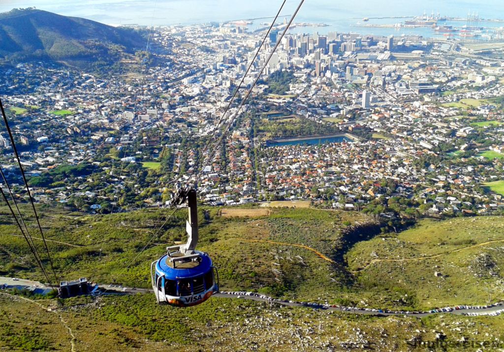 In Kapstadt kommt man an einem Besuch des Tafelbergs kaum vorbei, zumindest wenn das Wetter mitspielt. Sportliche Zeitgenossen können die Wand zu Fuß besteigen, man kann aber auch die Seilbahn nehmen. Als mir klar wurde, dass diese Bahn 1929 erbaut wurde und ohne Stütze 1200 Meter überbrückt, wurde mir etwas mulmig. Zum Glück wurde die Anlage von der renommierten Firma Doppelmayr kürzlich erneuert und mit einer 360 Grad Drehkabine ausgestattet. Von oben hat man herrliche Aussichten auf das umliegende Land.