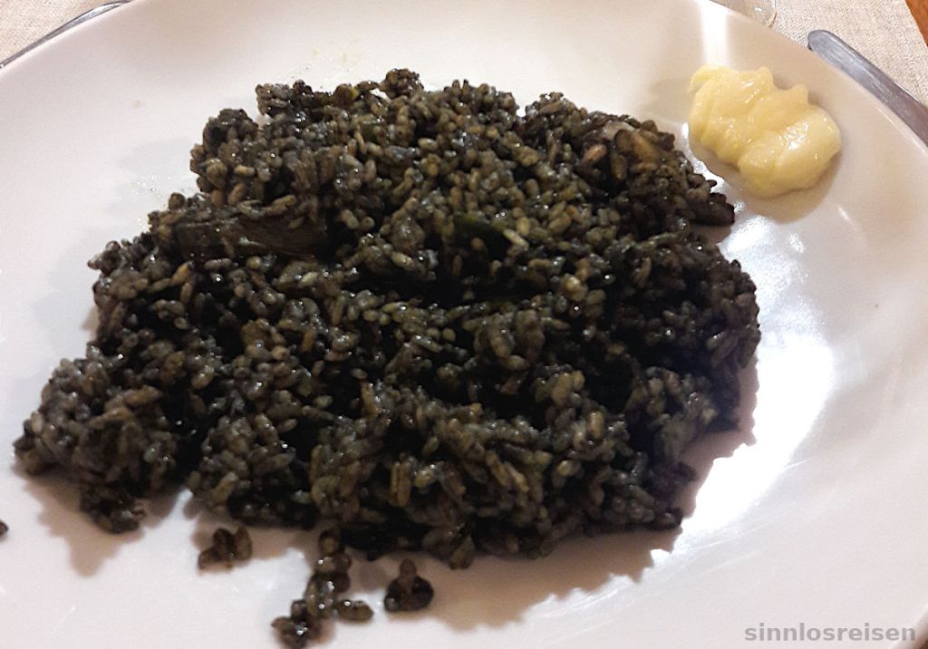 Einer der wenigen spanischen Flüsse, die das ganze Jahr über Wasser führen, ist der Ebro. Sein Mündungsdelta wurde zu einem Naturschutzgebiet deklariert. In den feuchten Wiesen im Umland wird Reis angebaut, den man hier überall in den Restaurants als Arroz Negro aufgedrängt bekommt. Das hat nichts mit dem N-Wort zu tun; es handelt sich um ein Risotto, das mit der Tinte von Calamares schwarz gefärbt wird.