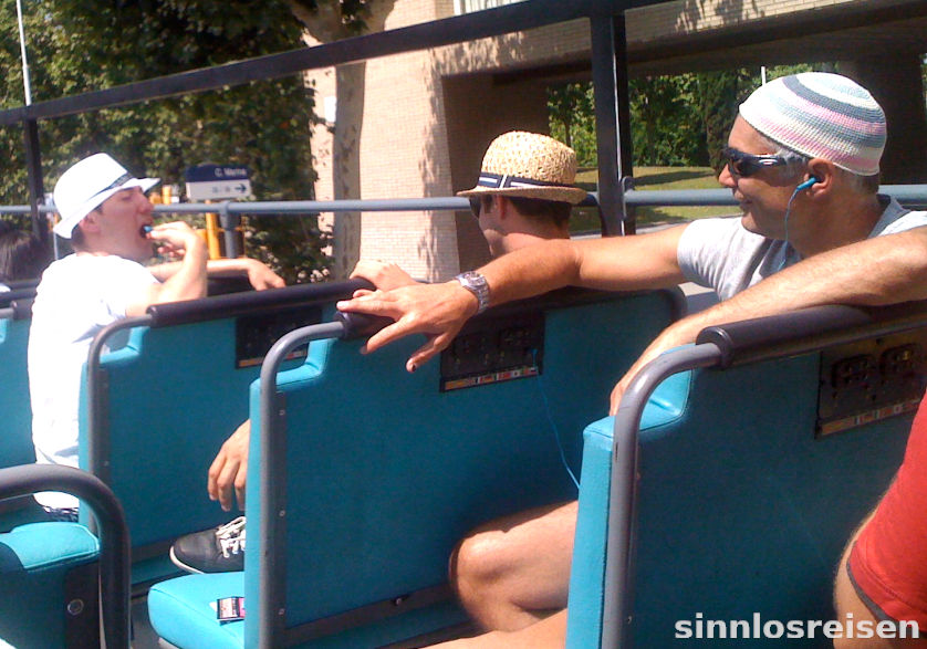 „Nach Brüssel? Bist du etwa einer von diesen verlogenen Politikern?“ legt Frank ohne Gnade nach. Während Frank weiter auf den Herrn einredet und ihn mit seiner Spießigkeit aufzieht, bis seine Brillengläser beschlagen, machen sich die anderen aus unserer Reisegruppe vor Lachen fast in die Hose.