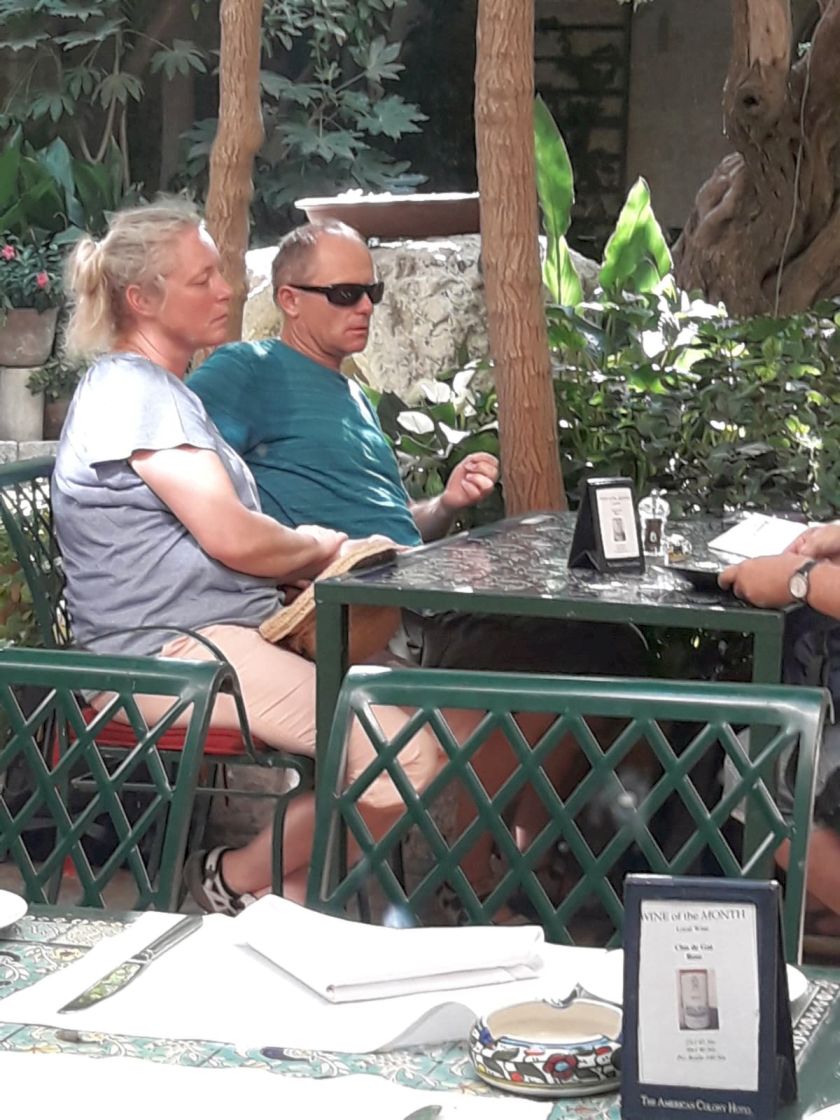 Wer von euch hat schon mal an einem Gottesdienst im griechischen Ritus teilgenommen? Genauer gesagt im Griechisch-Katholisch-Melkitischen Ritus. Niemand? Definitiv eine Erfahrung wert. Die Gesänge sind ohrenbetäubend – dagegen war unser Franken-Chor in der Geburtsgrotte in Bethlehem ein Mäusequartett. Hört sich nicht immer nach Gesangsausbildung an, aber der Herr hat’s vernommen. Unser Pfarrer – ja natürlich, wir hatten neben Johannes, welcher die weltliche Reiseleitung inne hatte auch eine geistliche Reiseleitung dabei – durfte das Evangelium in Deutsch vorlesen und vom (laut seinen Ausführungen) äußerst schmackhaften Mess-Rotwein kosten. Wir durften dann auch nach dem Schlusssegen noch ein deutsches Kirchenlied anstimmen. Aber bei aller Mühe, die Dezibel-Competition haben wir haushoch verloren. Sollte sich ein Nicht-Christ in einen Griechisch-Katholisch-Melkitischen Gottesdienst verirren und so gar nichts mit dem Ritus anfangen können, es gibt eine ganz profane Beschäftigung: Bilder gucken – so wie früher im Kinder-Gebetsbuch. Die Kirchen sind komplett von unten bis oben – von vorne bis hinten mit Bildern ausgemalt und mit Ikonen bestückt. So gehen die fast 90 Minuten Gottesdienst dann auch rum. Aber wir haben’s genossen und im Anschluss gab’s dann noch Tee, Kaffee und Gebäck. Da ist sie wieder, die Gastfreundschaft.