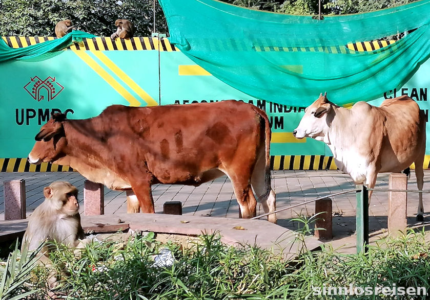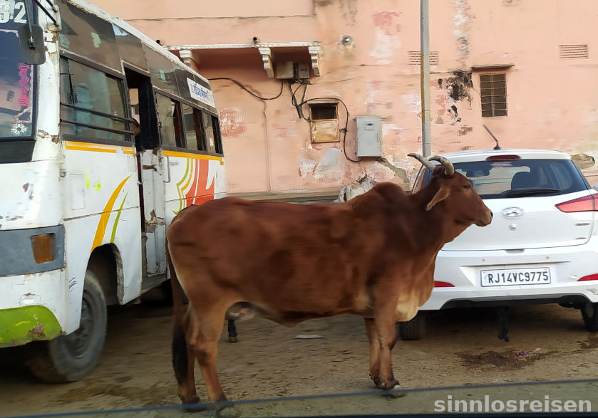 The highest form of life among animals is the cow, so they are revered as sacred in India. If such a cow dies, it is reborn as a human being. With some fellow citizens you also notice this in their behavior, sometimes something sticks, pay attention to it! The next time you order a beef sirloin steak in a steakhouse, you should consider that there might be your unborn grandchild on the plate. Now you understand why most Hindus are vegetarians.